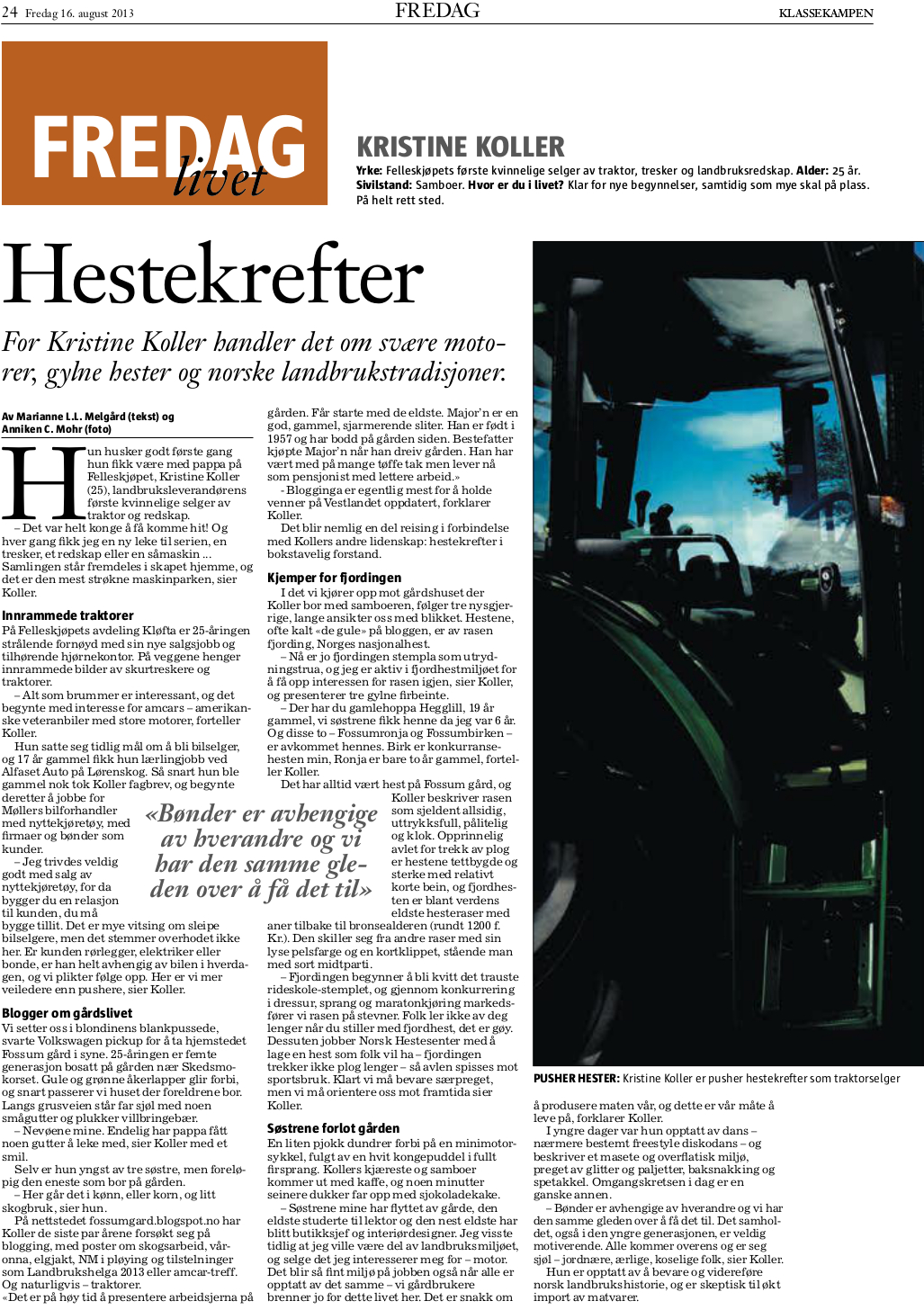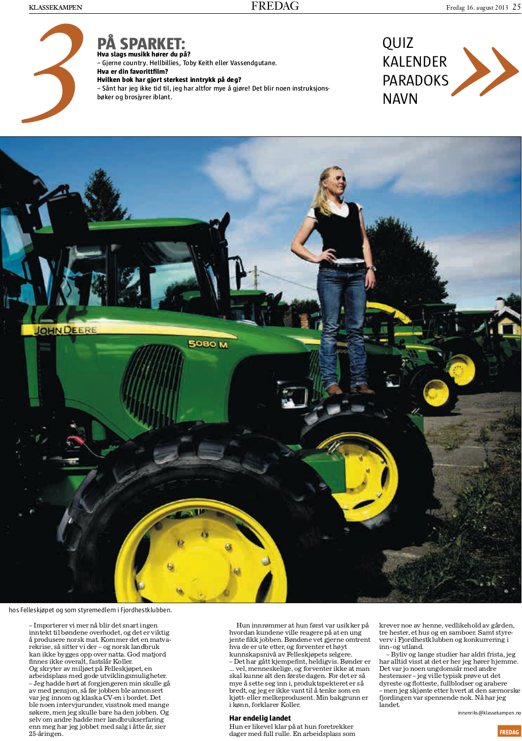 Det handler om svære motorer, gylne hester og norske landbrukstradisjoner for Felleskjøpets første kvinnelige traktorselger.