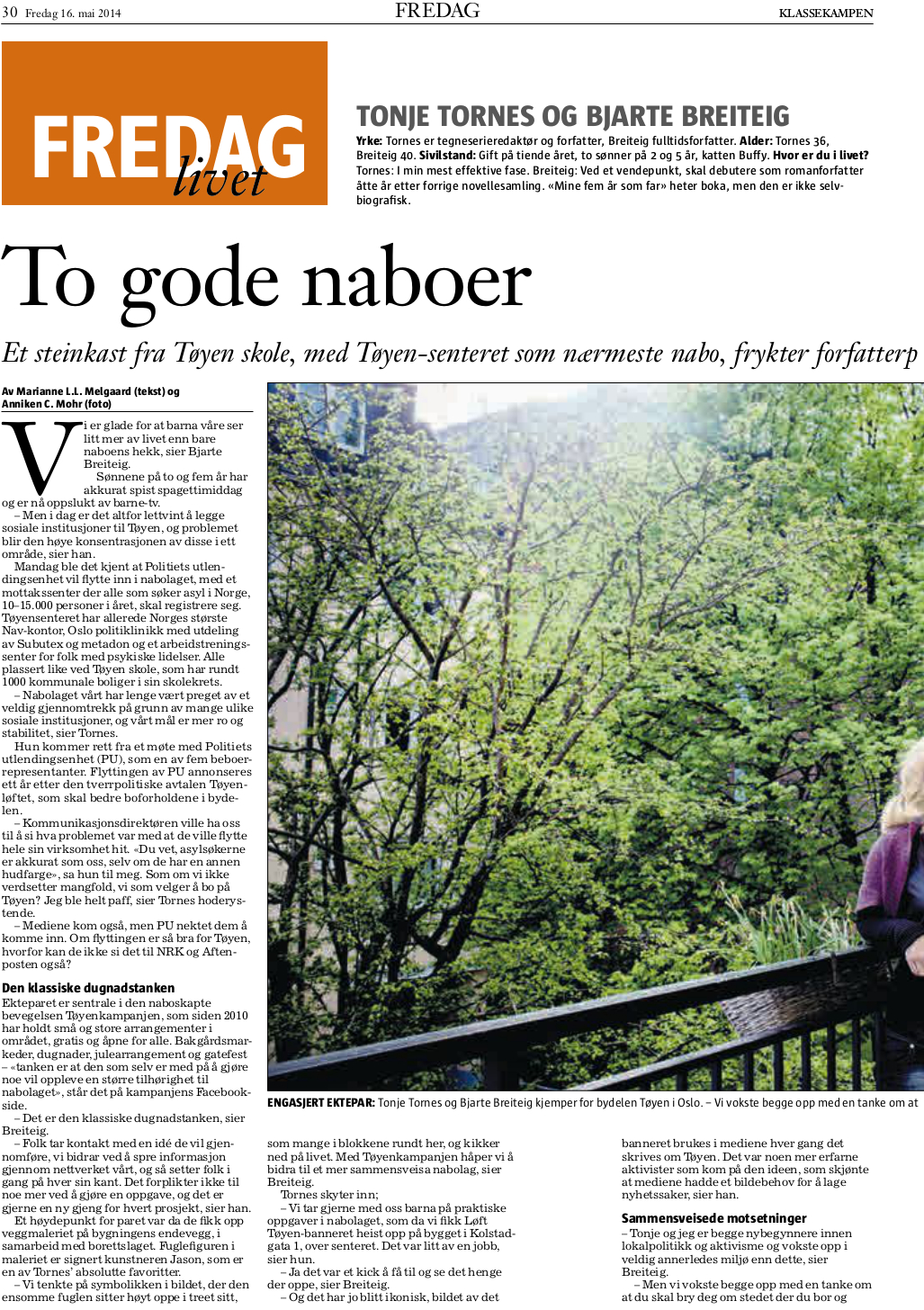 Et steinkast fra Tøyen skole, med Tøyen-senteret som nærmeste nabo, frykter forfatterparet Tonje Tornes og Bjarte Breiteig at Tøyenløftet går mot løftebrudd.