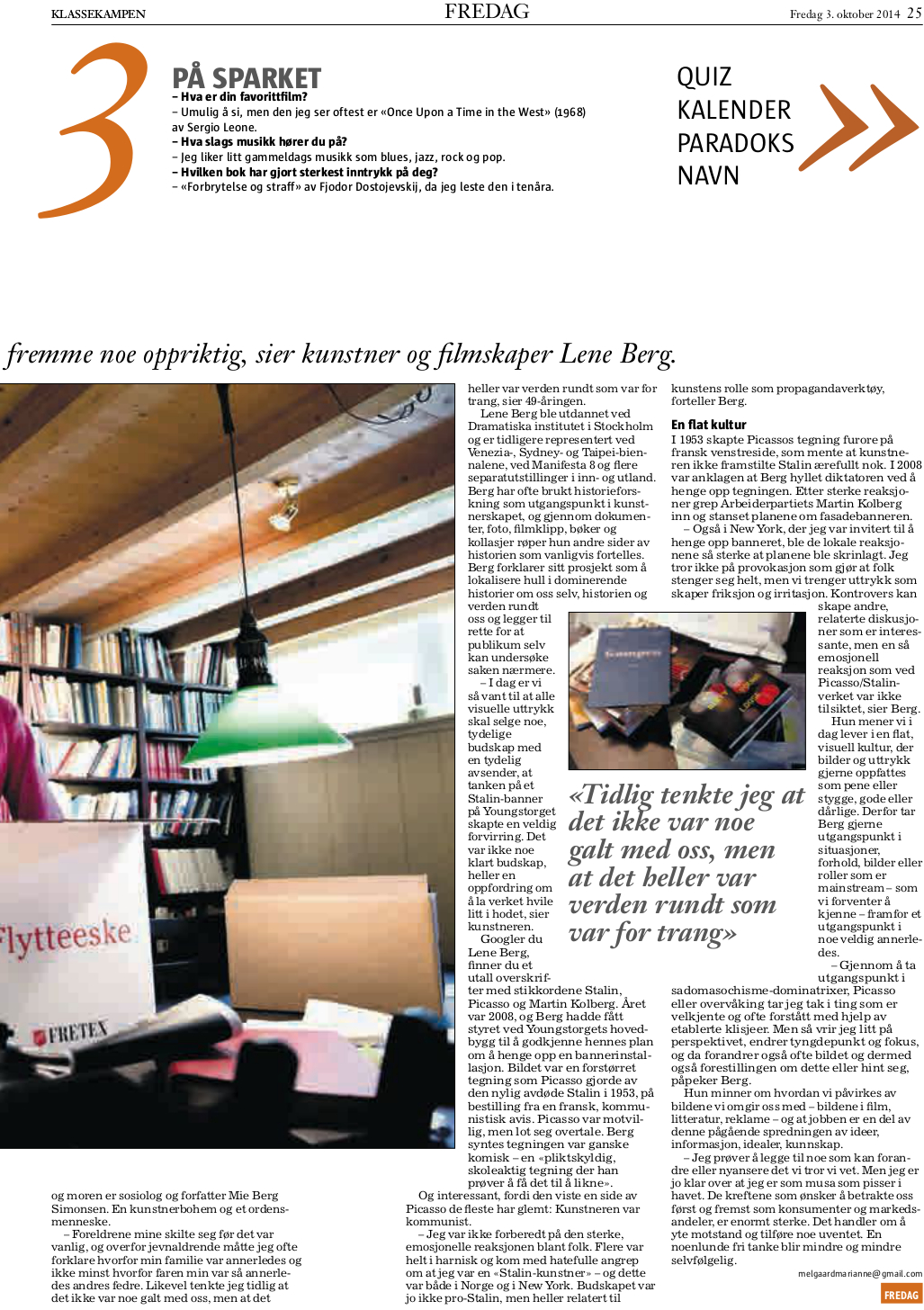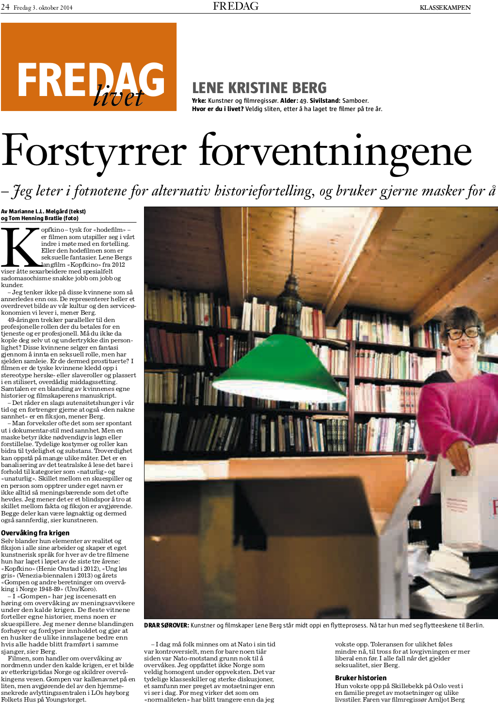 – Jeg leter i fotnotene etter alternative historiefortellinger, og bruker gjerne masker for formidle noe oppriktig, sier kunstner og filmskaper Lene Berg.