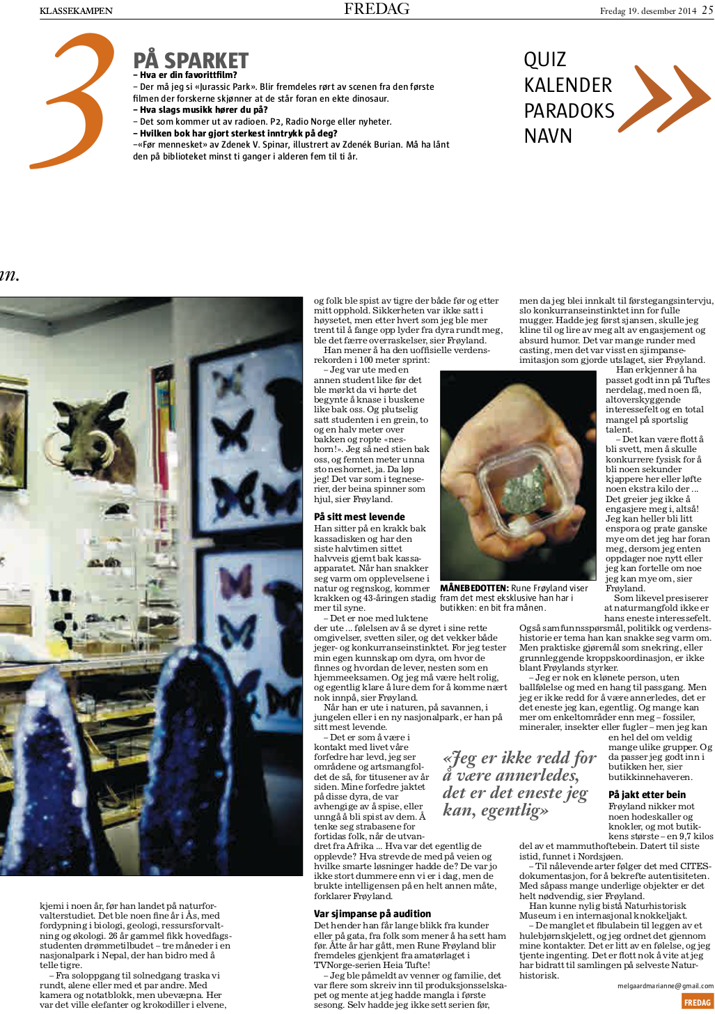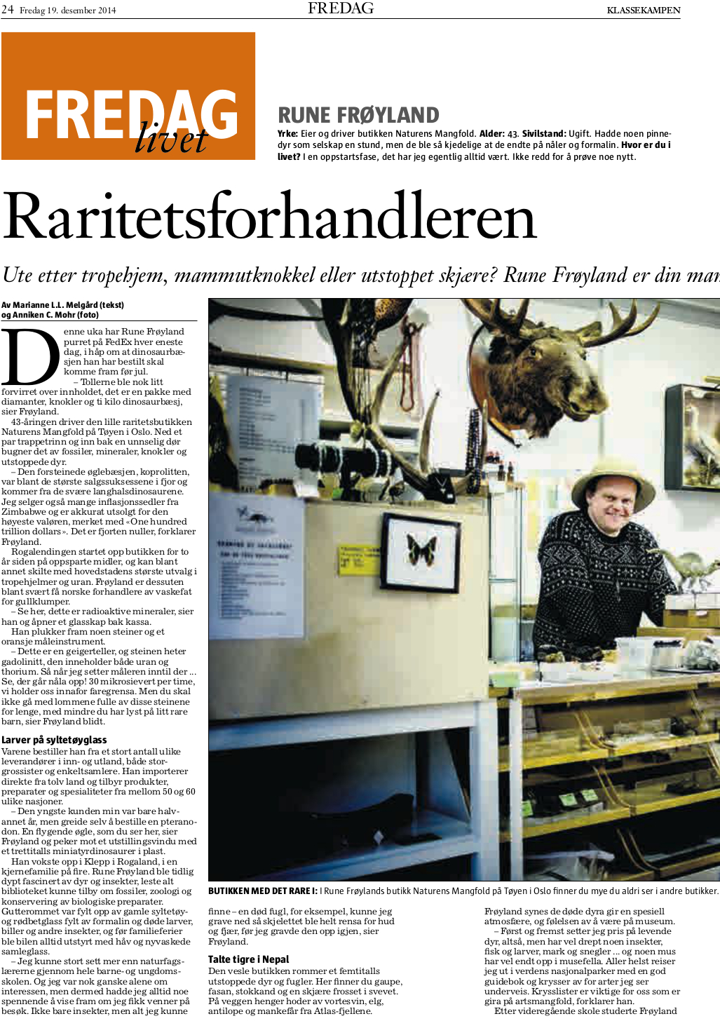 Trenger du tropehjelm, mammutknokkel eller utstoppet skjære til plassering under juletreet? Rune Frøyland er din mann.