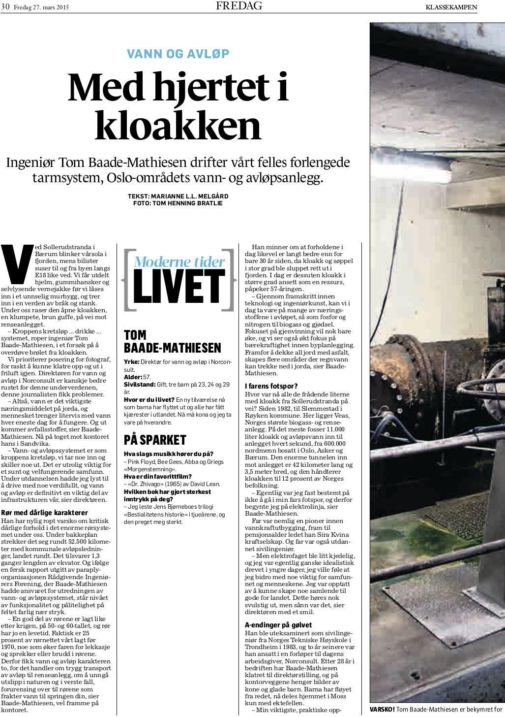 Han drifter vårt felles, forlengede tarmsystem, Tom Baade-Mathiesen, ansvarlig direktør for Oslo-områdets vann- og avløpssystem.