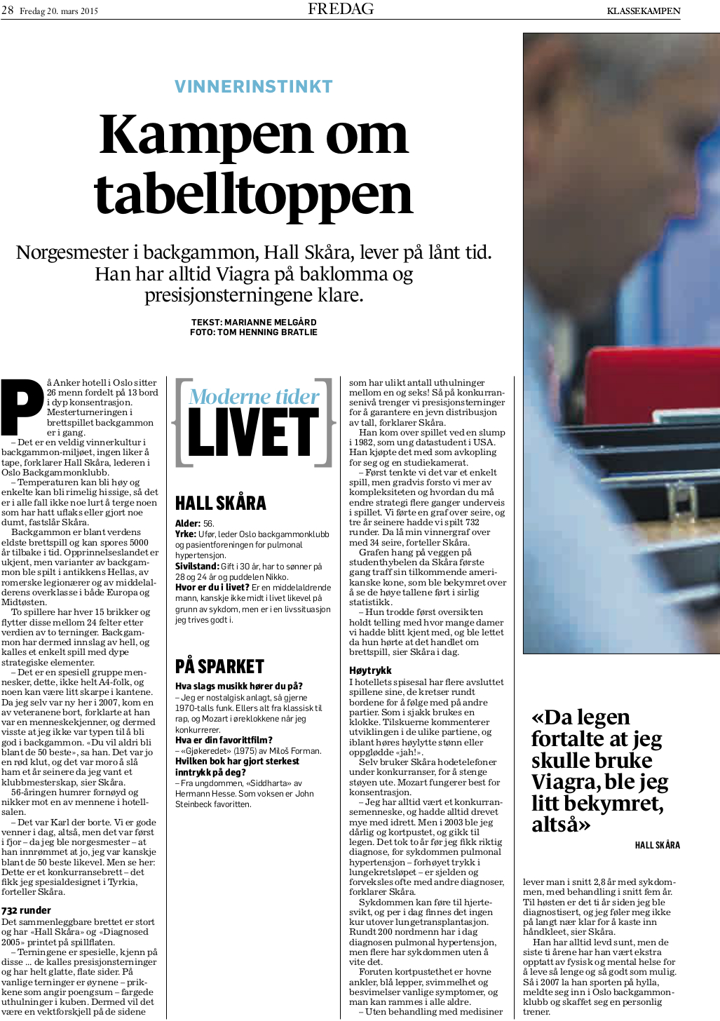 Norgesmester i backgammon, Hall Skaara, lever på lånt tid. Han har alltid Viagra på baklomma og presisjonsterningene klare.