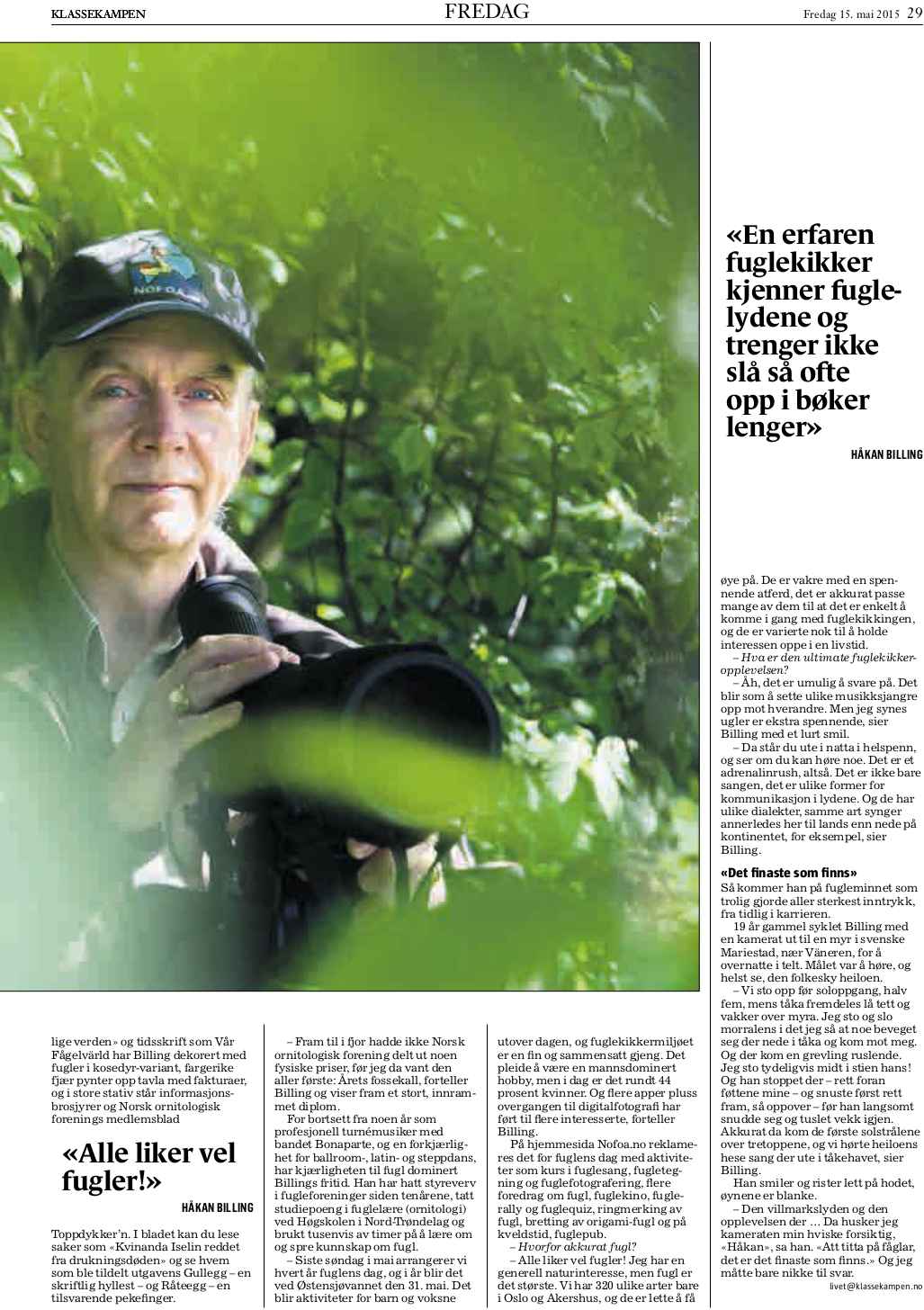 For ornitolog Håkan Billing handler fuglekikking om vern av våre bevingede venner. Og om jakten på adrenalinrushet.