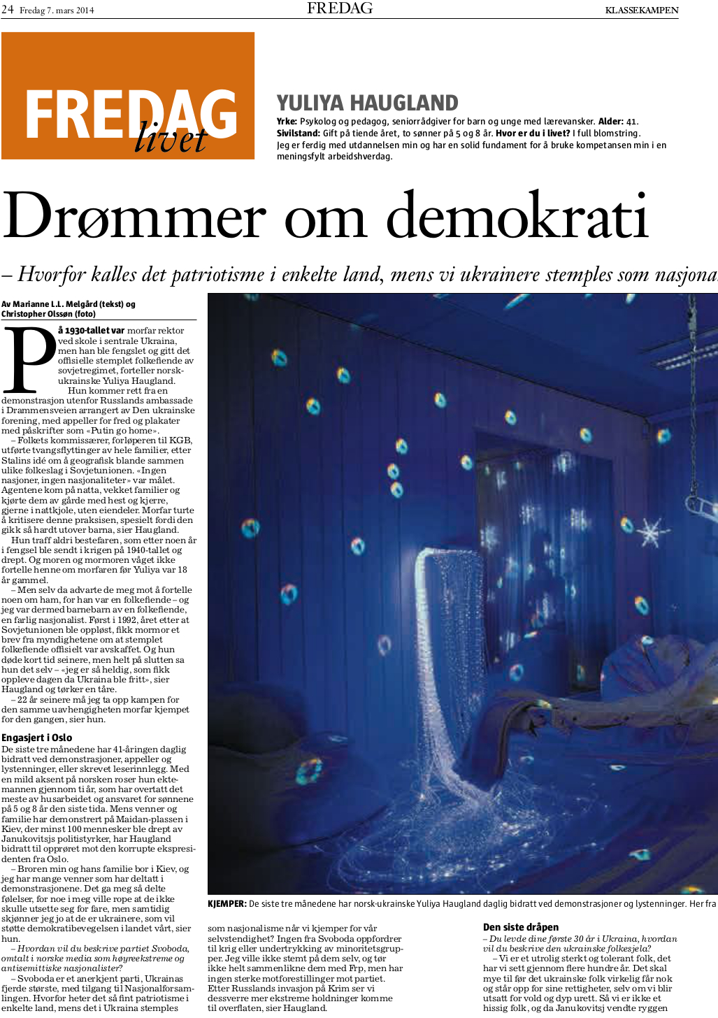 – Hvorfor kalles det patriotisme i andre land, mens vi ukrainere stemples som nasjonalister når vi kjemper for selvstendighet og rettferdighet, spør aktivisten Yuliya Haugland.