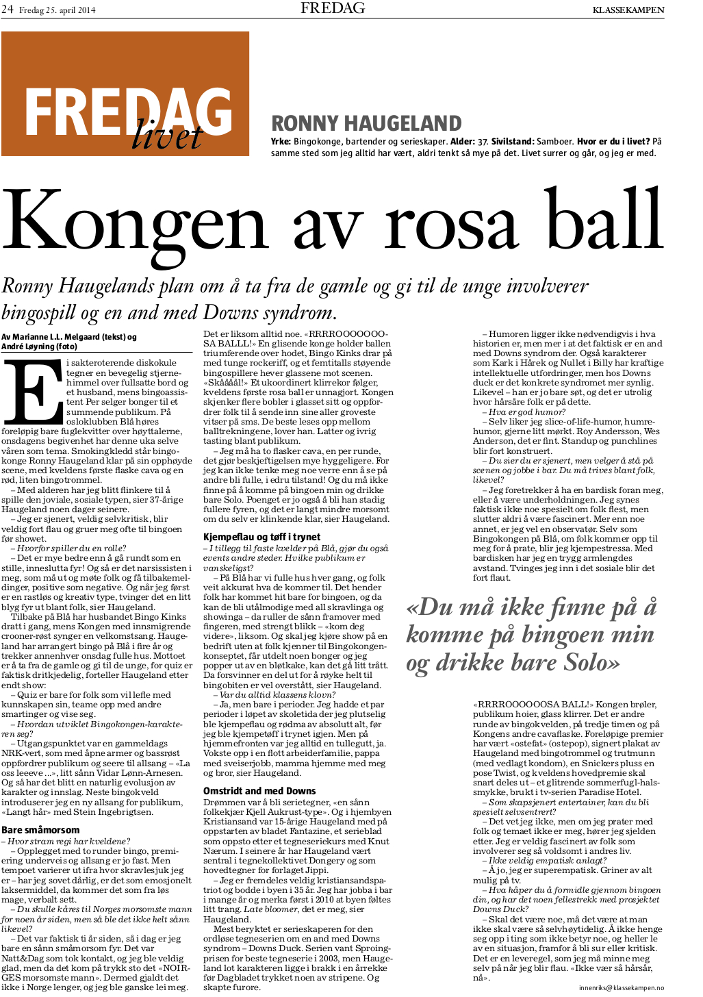Ronny Haugelands plan om å ta fra de gamle og gi til de unge involverer bingospill og en and med Downs syndrom.